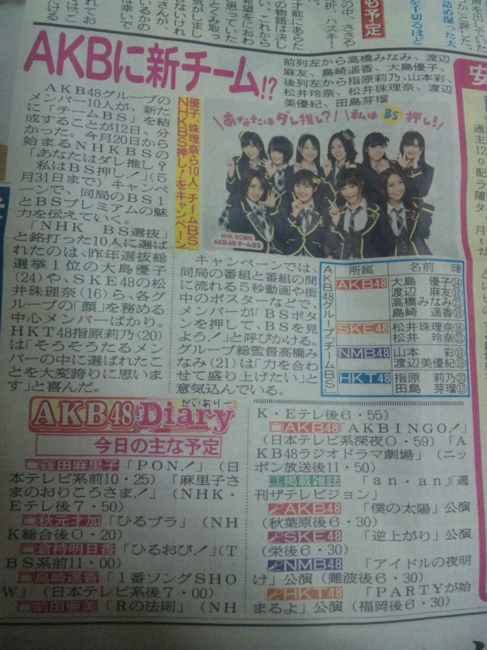 AKB48(篠田麻里子・柏木由紀・渡辺麻友・島崎遥香・大家志津香・倉持明日香)