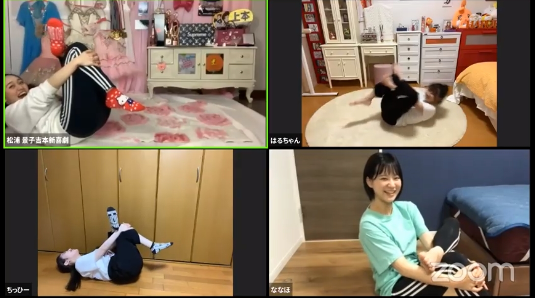 バレエ前のストレッチでつまずくちっひーw