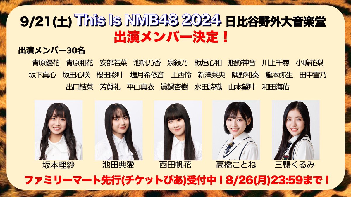 追加メンバー ▶︎ 坂本理紗、池田典愛、西田帆花、高橋ことね、三鴨くるみ#NMB48 メンバー30名が出演する約2年ぶりの東京で単独野外ライブ!!